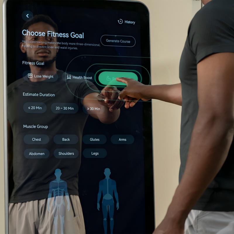 - Smart Mirror Functionality: When not in use, the K1 transforms into a sleek, full-length smart mirror, blending seamlessly into home decor. This dual functionality enhances the user experience, adding both practicality and style to any room.